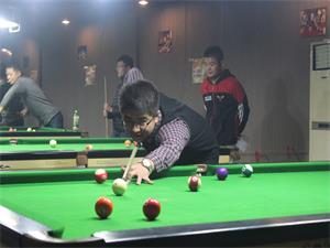 此次台球比赛采用新国标3局2胜制,经15日一天的比赛决出32强参加16日的角逐。选手们俯下身子,仔细用杆比量球与球袋之间的距离,细心调整出手的角度与力度。计算机与信息工程系软件开发班的王风山顺利进入16强,在16进8的比赛中遇到劲敌付天宇,两人实力相当,比赛打到争夺黑八进球阶段,由王风山击球,只见轻轻一个高杆推球,黑八稳稳地停在袋口,却未落入球袋。场上爆发出两种完全不同的声音,但这依然没有影响到王风山的发挥,一点点的向着对手逼近。但是,心理素质好起不了决定性作用,随着时间的流逝,双方的技术差距逐渐显现出来,只见对手付天宇轻打一个擦边球,黑八完美入袋。王风山止步八强。经过紧张激烈的角逐,文学与新闻传播系的郑永学夺得胜者的桂冠。赛后,在采访过程中,王风山表示说:“对于这次比赛让我认识到了这么多志同道合的朋友,很开心,虽然没能进四强但是能和这么多的高手过招,心里也很满足。”