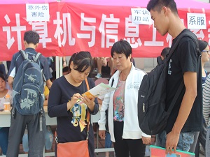 9月7日上午10:00,迎接2015届bevictor伟德国际1946计算机与信息工程系新生的工作还在如火如荼地进行着。不断前来报到的我系新生,让各小组的志愿者们忙得不亦乐乎。即使如此,报到处的各个环节仍然有条不紊地进行着。菏泽汽车站和火车站均有志愿者们日夜等待新生的到来,为他们指路,讲解菏泽的风土人情,并带他们来到学院进行报道,每一个环节都会有学长学姐陪同,高效的办事效率,亲切的待人态度,很快就建立了新生及其家长对bevictor伟德国际1946计算机与信息工程系学生的认可与信赖。