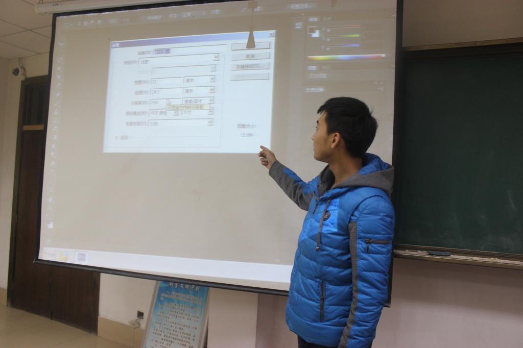 晚上七点,全校PS爱好者早早来到302教室等待电子商务协会网络部部长王祥宇的精彩开讲。首先,王祥宇介绍了PS的简史以及发展状况,对于初次接触PS的学生来说,发展状况是他们着重在意的话题,学PS到底有什么用,PS在以后工作中的地位如何,网络部部长王祥宇一一为学生们介绍。介绍完PS的简史,基本操作的演示正式开始,王祥宇从PS页面的工具栏开始,对各类小工具的使用方法细致讲解,学生们也聚精会神、记好笔记、认真操作。快捷方式是学生们感兴趣的话题,因为它能够节省时间、快速P图,学生们快速准确的记下一个个快捷键,为以后的工作做准备。第三个讲解内容是PS的图片修补技巧,看见一个个神奇的合成图片,学生们不禁大吃一惊、跃跃欲试。一个好的照片需要拍照者的技术和后期的制作,图片修补正是满足了后期的制作。最后,王祥宇讲解的是一些经典的PS作品,看着这些优秀的照片,学生们对PS有着无限的憧憬。在学生们的热烈掌声后,PS实训于晚上八点半圆满结束。