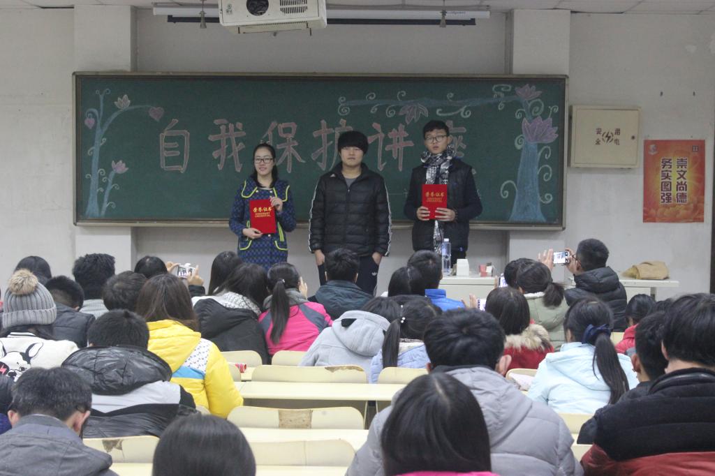 为了促进大学生心理健康,切实向大学生们传授一些经验教训,保护大学生健康成长。11月29日,计算机与信息工程系心理健康部在B楼312教室和314教室举办了“爱我自我保护”讲座。参加讲座的学生为大一全体学生,主讲人是2012级赵康莉、2014级张玉飞。