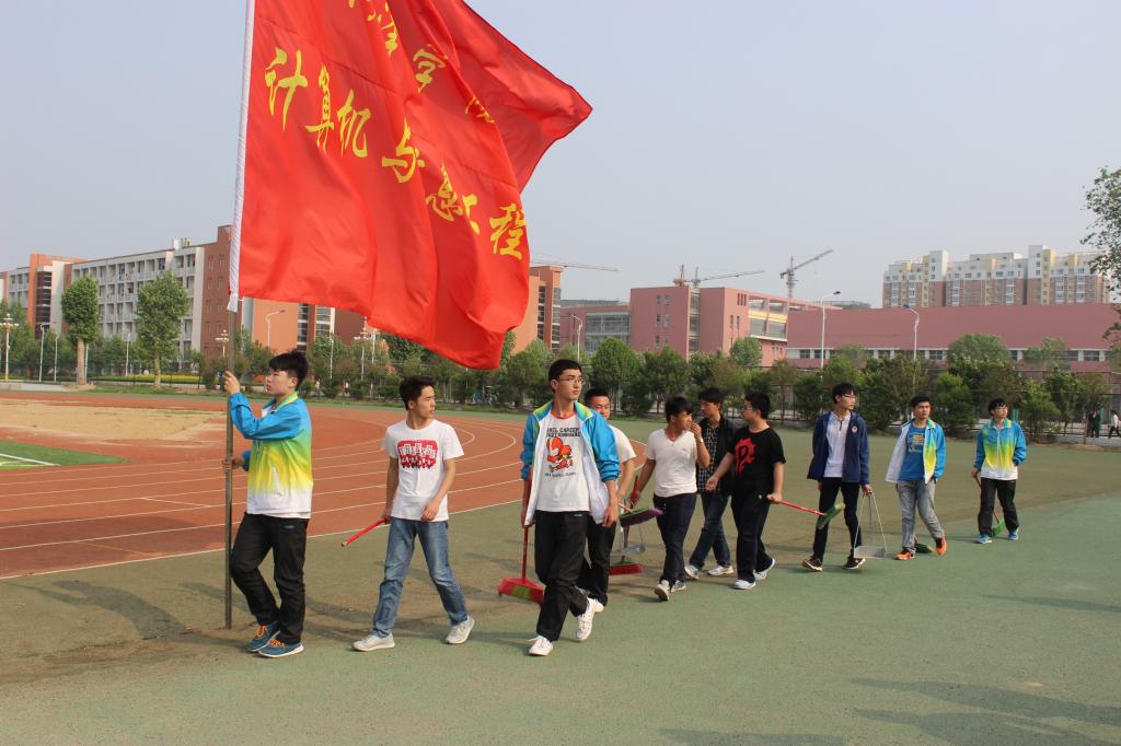 运动会开幕式结束后,计算机与信息工程系志愿者清扫田径场活动正式开始。计算机与信息工程系的志愿者们拿起扫帚、铁簸箕、垃圾篓等卫生工具,高举计算机与信息工程系系旗,排起整齐的队伍到田径场上开始清理垃圾。他们不放过田径场上的每一个区域,每当看到有垃圾的地方,他们便分散开来进行清扫,装入垃圾篓带走处理。计算机与信息工程系志愿者们每隔一段时间都清扫一次田径场,给予了田径场一整洁的面貌。