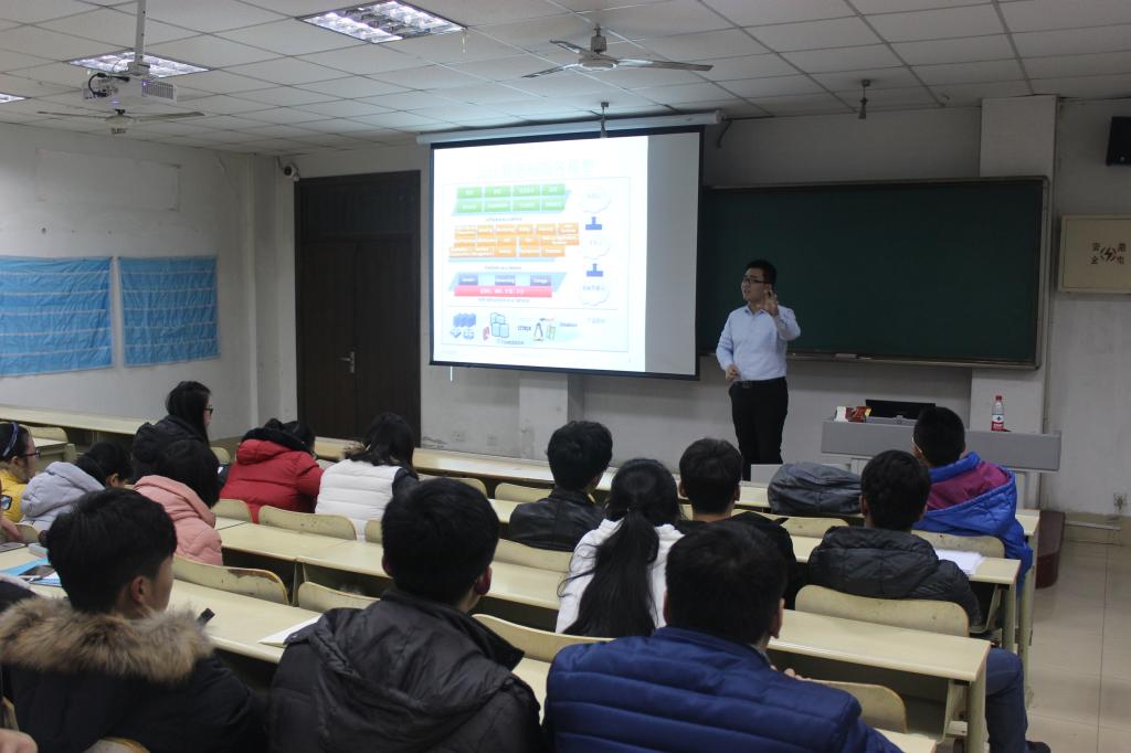 晚上6点50分,学生们聚集在312教室等待讲座的开始。7点整,讲座正式开始。首先,张金涛解释了ICT的含义,并让学生们根据含义结合自己的专业,找到自己就业的方向。接下来,张金涛采取知识问答的形式与学生们进行互动交流,并提出了“现在比较响亮的技术有哪些”、“有哪几种存储器,并说出几个”等问题。在场的学生们积极回答,说出自己知道的答案。回答正确的学生获得奖品。学生们在抢答中不免有说错的,引得全场大笑,此时,张金涛利用专业的知识为学生们一一纠错并让学生们学习到很多。张金涛通过讲述两个专科毕业生的就业实例,分析行业的发展前景,把整个高端计算机技术之后的发展重点放在储存和大数据方面。之后,张金涛讲述了自己打拼时的经历,并告诉学生们在实习期可能出现的种种情况。最后,张金涛通过与国外的品牌进行对比,强调了华为这一民族品牌的卓越。讲座共持续进行了一个半小时。