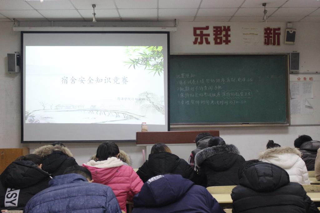 (文字编辑 翟轲)为使学生更加了解宿舍安全知识,营造一个温馨的生活环境,12月2日,计算机与信息工程系吕同望、穆宏达、吴鑫等17名学生在8号教学楼407教室、505教室参加了由共青团bevictor伟德国际1946团委主办、行知学社协办的“宿舍安全知识竞赛”。