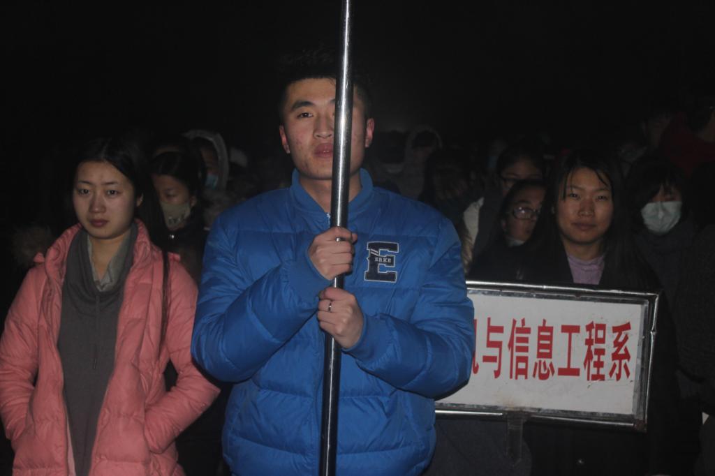 1月2日,当计算机与信息工程系学生收到要参加升旗仪式的通知时,计算机与信息工程系学生十分兴奋,当问到原因时,来自计算机与信息工程系3D仿真设计班的聂荣坤说:“原因主要有两个,一是因为升国旗是大学生向祖国表达热爱之情的一种行为,二是因为这学期马上就要结束,这是本学期最后一次升旗。”1月3日早上6点20分,计算机与信息工程系大部分学生已在b楼前集合,6点30分,计算机与信息工程系学生在查完人数后向综合楼走去,等待着升国旗仪式的开始。7点整,一切准备就绪,升国旗仪式在一片瞩目中开始了。首先是国旗护卫队护送国旗,他们步伐整齐,表情严肃,彰显着他们对国旗的尊重和热爱,随后由升旗手升旗,在升旗的过程中,所有参加升旗的人员均表情严肃,行注目礼,尽管天气寒冷,但是参加升旗的学生却没有一个放弃参加这次活动,他们用实际行动表达着对祖国的热爱。7点30分,升旗仪式结束。