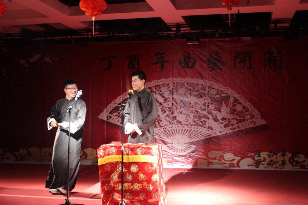 晚上7点,晚会正式开始。宁兆伟等人表演的小品《疯狂电视台》,用搞笑的话语,默契的配合,引得观众捧腹大笑。接下来李秀程和他搭档表演相声《过年那些事》,搞笑的例子持续讲述着,观众们自发地鼓掌欢呼,李秀程不时的与观众互动使得现场气氛活跃。张国旭和马庆伟的吉他弹唱《探清水河》,优美的歌声与柔和的灯光融为一体,观众们一直拍手跟着打节奏,欢呼声从观众席中阵阵响起。最后由滑稽的舞蹈结束整场晚会,此次晚会共持续了两个小时。
