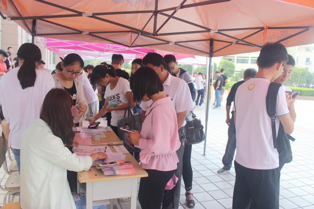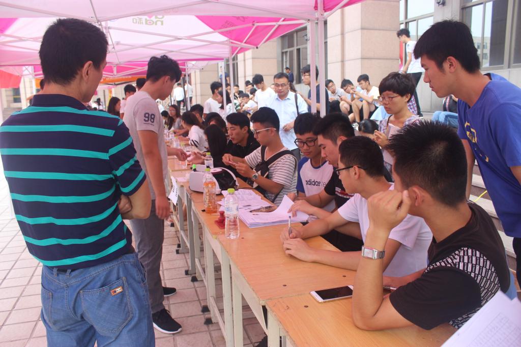 在昨天的明确分工下,今天凌晨到早晨时间,一直有部分学生会成员在火车站和9号教学楼底下迎接新生。早上7点,学生会成员和志愿者们都聚集在9号教学楼下开始准备一天的工作。即使工作很繁重,可是所有人都在积极地做着自己的工作,各个环节有条不紊的进行着。接新生的每个环节都有学长的陪同,帮助他们从报道到宿舍可以高效的顺利完成。负责帮助新生搬运行李的志愿者不断地在宿舍和报到处往返。烈日下,他们没有丝毫怨言,争先恐后的帮助每一位新生。学长们也是在自己的工作之余为新生解答他们对新环境、新学校的困惑,传授自己的经验。