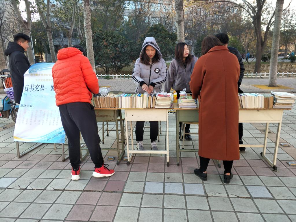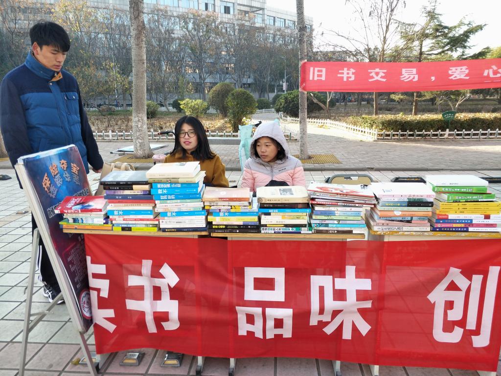 上午8点整,活动正式开始。伟德victor1946学生会社团部成员把旧书由b楼搬到活动指定地点。天气虽然寒冷,却依然挡不住学生们参加活动的热情。各学院旧书交易的地点由抽签决定,一切准备就绪后,社团部的成员们把书按题材和作者进行分类。活动过程中,为了让购买者了解书籍信息,工作人员把小标签贴在书上,并标注价格。一些读书爱好者们姗姗来迟,来到活动现场挑选自己喜欢的书籍。这一刻,书香弥漫着整个校园。下午4点整,活动圆满结束。未出售的旧书,可经得主人同意后上交社团联合会,然后由他们捐赠给孤儿院、福利院等,献出温暖。
