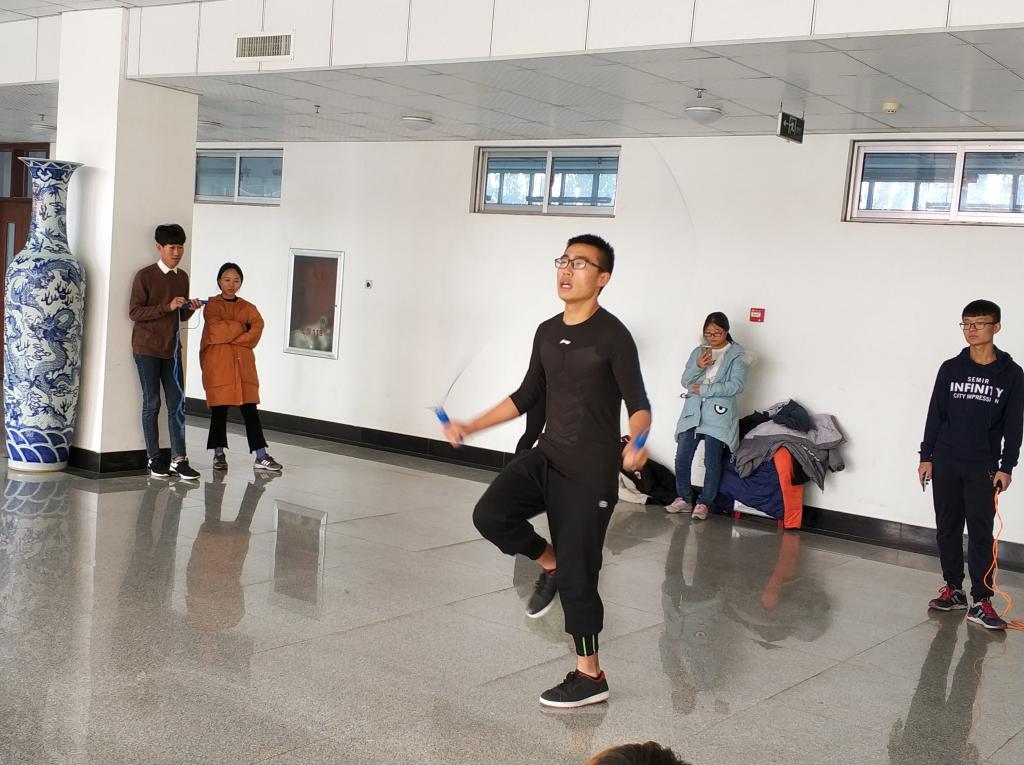 下午2点,比赛正式开始。首先进行的预赛就十分激烈,一分钟速跳后,分别决出了男子和女子各前十名,他们将会直接进入到决赛。经过短暂的调整后,激动人心的决赛终于到来,寒冷的环境并没有降低他们对于比赛的热情,每位选手都拿出了自己最好的状态,跳跃、甩臂、落地……每一个动作都紧密地衔接着。观众们都屏住了呼吸,宽阔的大厅只能听见跳绳划破空气的“呼呼”声,短短的一分钟犹如表演了一首协奏曲。下午3点30分,比赛圆满结束,本次比赛最终决出了男女各前三名,并颁发了证书和奖品。
