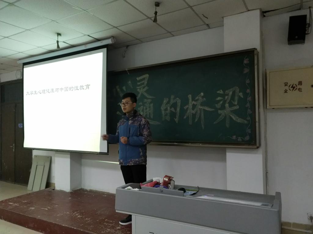 晚上7点整,讲座正式开始。刘霄与黄鹤分别在312教室、314教室进行演讲。演讲主要阐述环境适应问题、学习问题、人际关系问题、性格与情绪问题以及恋爱与性心理问题这五个大学生常见的心理问题,并对这五个方面的问题进行细化。讲座期间,演讲人不时提出一些问题让学生们思考,讲到恋爱方面时,演讲人抛出了“择偶要求”这个问题让学生们发表各自的看法,有位学生主动发言,谈到了自己对恋爱对象的要求及想法,正确的感情观得到了咨询师的赞同,场下响起了热烈的掌声。在讲到处理大学生人际关系方面的问题时,咨询师提到追求人际交往的完美,交往中的心理问题,交往需要与自己经济能力之间的矛盾,异性交往适应不良,这些都是处理人际关系是导致心理不讲康的因素,学生们就此问题展开了激烈的讨论,三人或两人一组互相交流自己对于人际关系的经验。晚上8点整,讲座正式结束。