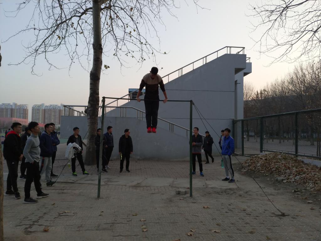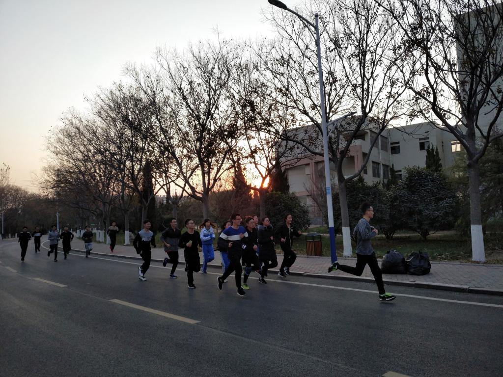 下午4点,在只有5℃的天气里,操场上只留下体育运动人员,“两万五”越野赛的成员身着运动服开始训练。成员们保持着队形进行了5圈400米的热身跑。短暂的休息后,成员们集合绕规定比赛路线进行赛场适应训练。作为见习项目,男成员首次进行学习引体向上基本动作,贾世哲讲解了动作要领并做了示范动作,在几个单杠卷腹动作后,成员们集体叫好。“这是我第1次参加越野赛,长跑很能磨练人的意志,强健人的体魄,希望以后还有机会参与这种体育活动,也希望在接下来的越野赛中取得好成绩。”2017级伟德victor1946网络工程(.net方向)孙明雪说。下午5点30分,训练结束。