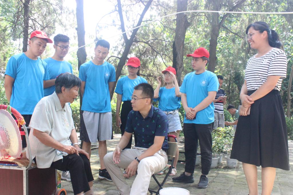 上午9点,实践团队来到焦裕禄烈士陵园,此时的姚崇荣在树荫下乘凉,事后她说:“虽然退休了,但是心里还是挂念这个园子,总是想回来看看。”一见面,带队教师李效领就握住了老人的手,询问老人的身体状况和生活情况,并且为老人送去了大米和花生油。团队成员悉心听取老人讲解焦书记的生平事迹,她讲到焦书记为两省连接起了友谊的桥梁。老人教导成员们要向焦书记学习,党员要带头发扬勇于奉献的精神。从老人的言语中不难听出,她对焦书记有着深深的敬意,成员们也被老一辈共产党人心中的爱国情怀所震撼。慰问结束后,成员们与姚崇荣老党员合影留念,临走时她还不忘嘱咐成员们要努力学习,多为人民群众做贡献。