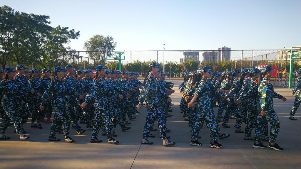 上午7点40分,伟德victor19462018级的新生准时来到操场,等待教官的到来,8点整,训练正式开始。上午训练的内容主要为正步练习,新生按照教官的要求,认真训练。一上午的训练,新生筋疲力尽,随着教官的口令:齐步走、摆臂、正步走。在教官严格的训练下,短短的几天里,正步练习已经初见成果。艳阳高照,学生们的脸颊上开始出现汗珠,但是他们仍然坚持着,他们的口号声依然响亮。短暂的午休过后,下午2点30分,训练再次开始。在训练持续进行一个小时后,教官们开始着学生唱军歌,教官唱一句学生跟着唱一句,虽然军训很热很累,但学生们依然把军歌唱的响亮。下午6点整,第六天的训练正式结束。