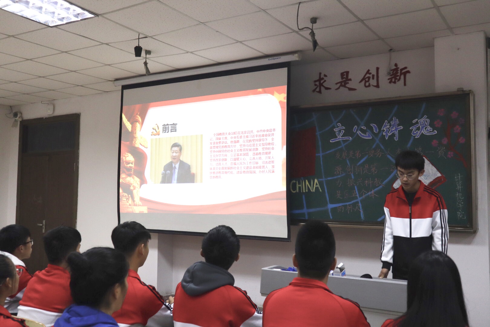 (文字编辑:赵鲁艳)11月1日,伟德victor1946在9号教学楼306教室举办以“振兴科教 立心铸魂”为主题的周四论坛。2018级物联网工程、云计算、网络工程专业的全体学生参加了此次周四论坛。