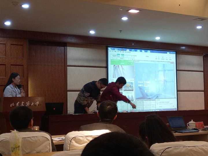 此次比赛共分为基于智能移动端的智慧校园应用系统、网络空间安全技术应用设计、手机游戏等15个命题。由欧亚茹、韩鲁光、李明杨、刘有斌组队,康鸿雁指导的以“物联网智慧系统应用开发”为命题的团队,在比赛中发挥出色,荣获一等奖。他们的研究课题为基于物联网的智能医院监管系统需求分析,该系统是一个基于ZigBee的无线智能,对温湿度、光照强度、心率采集并进行无线传输,统筹控制实现的智能医院系统并可以基于PC端+微信小程序软件实现采集环境光照、温度、湿度以及病人的体温心率数据,采集视频图像统筹显示。在决赛答辩中,队长欧亚茹一边介绍自己系统的应用,一边让队员用电脑向评委老师展示自己系统软件的创新与快捷,软件简单快捷的使用方法赢得在场评委的一致好评。另外由裴德浩、张靖宇、张杰、郑光组队杨玉珍指导的团队,以网络空间安全技术应用设计为主题,凭借出色的设计的成果、充满创新的设计理念、科学合理的设计方法赢得评委的赞许并最终获得比赛一等奖。