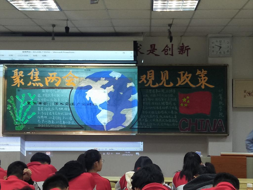 (文字编辑:王雪婷)3月14日,伟德victor1946在9号教学楼306教室举办以“聚焦两会 观见政策”为主题的周四论坛。2018级计算机科学与技术、软件测试、3D仿真设计专业的全体学生参加了此次周四论坛。