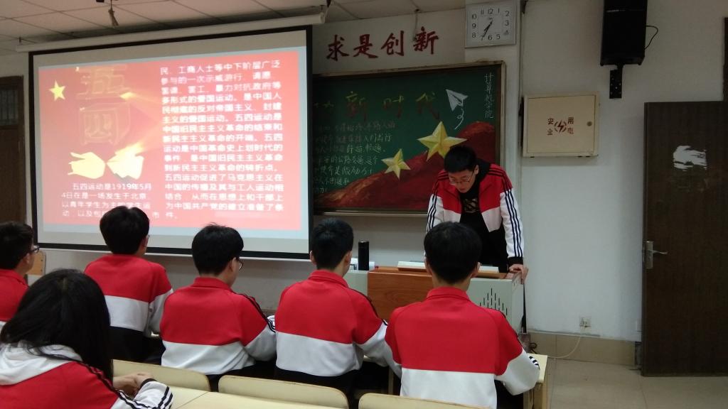 晚上7点30分,活动正式开始。本次活动采取了幻灯片演示与学生演讲相结合的方式,主题为“纪念五四运动,弘扬五四精神”。演讲人说:发扬“五四精神”必须做到一大一小,在树立伟大理想的同时,更要从小事做起,他表示愿意为祖国做自己力所能及的事情,以实现自己思想上一次大的飞跃。最后,他针对本次活动做了总结,希望学生能够继承和发扬五四精神,展现我院新风貌,引领思想潮流,做有为青年,共谱新篇章。活动结束后,全体学生仍然热情满满,积极表示追寻红色历史是坚定信念的必然条件,坚定自己的信念和目标,认真学习,仔细体会,结合我院实际,真正成为符合核心价值观的的新时代社会主义建设者与未来国家的主人。