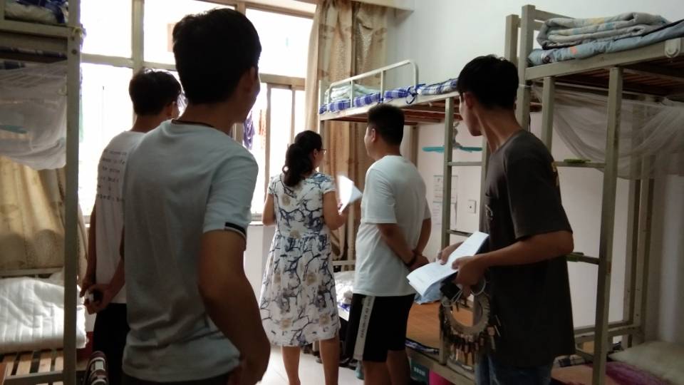 下午5点整,宿舍卫生检查活动正式开始。本次检查分为两队,王慧丽和何文娟带领一队,黄复贤、陆纯子、李效领、刘庆带领另一队。本次检查的重点是宿舍卫生。在检查过程中,发现各宿舍卫生状况普遍良好,做到了被褥叠放整齐,地面、桌面干净整洁,但与此同时,仍发现个别宿舍存在卫生死角,空气质量较差等卫生问题。检查过程中,老师们向学生强调要自觉维护宿舍安全,保持好宿舍卫生,同时还提醒大家注意饮食卫生,注意通风晒被,劝诫学生刻苦学习,营造良好的宿舍环境。学生们积极响应和配合此次宿舍卫生检查活动,通过一个半小时的检查,下午6点30分,宿舍卫生检查活动圆满结束。活动结束后,黄复贤对此次活动做了总结,要求学生干部要以身作则,树立良好的榜样。