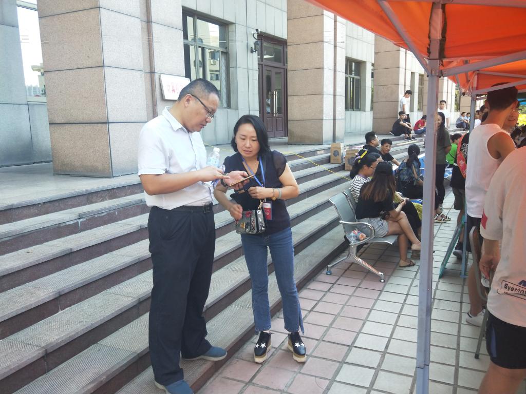 早上6点30分,伟德victor1946学生会成员已经来到迎新会场进行布置,半小时后迎新队伍便已准备就绪,等待新生报到。7点30分,新生在家长的陪同下陆续前来报到,工作人员耐心接受家长和学生的咨询,并为他们办理资格审查表、集结号扫码认证等报到手续,一名新生家长在新生报到期间对校园集结号扫码认证进行询问,工作人员拿出手机为新生家长演示步骤并详细讲解。迎新期间,学工办主任李效领,辅导员何文娟、刘庆,班主任李进明、邵丽丽负责资格审查工作并与现场工作人员一同维持现场秩序,以确保迎新工作顺利进行。考虑到新生第一次来学校,办理手续后,工作人员协助新生前往宿舍。迎新工作至上午12点结束,下午2点30分再次开始。由于下午天气较热,新生报到时,工作人员把长椅排成三排,并搭起棚子,为新生家长提供便利。