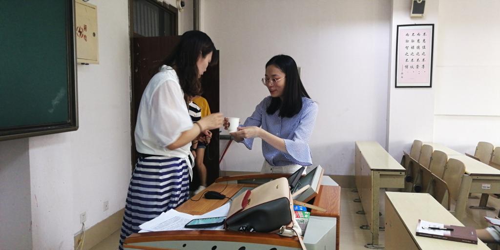 上午7点45分,参加活动的学生分为两组,分别在9号教学楼和综合实验楼集合完毕。准备就绪后,一组的学生前往各个教室,为教师们端上一杯花茶,表达对教师们节日的祝贺。与此同时,二组的学生在综合实验楼对教师的办公室进行了全面的打扫,给教师们一个舒适的办公地点。在"感谢师恩"主题党日活动开始前,上课的学生们也自发组织,在第一节课上课时全体起立,向教师们道声:老师您辛苦了!