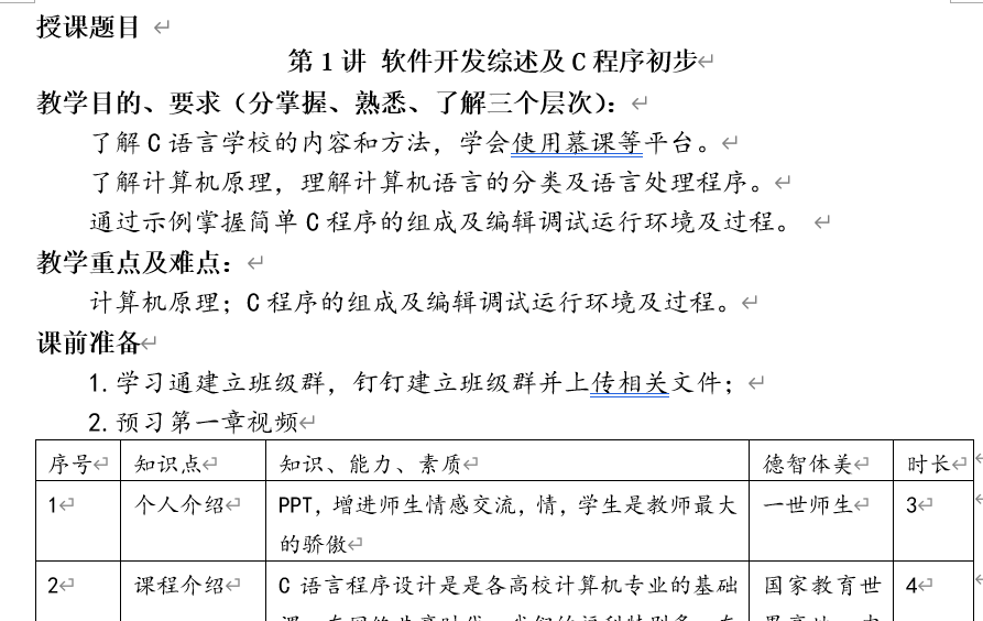 开课前的准备工作,C语言公共课的在线课程资源已经非常完善,但是同学没有课本,因此我在开学前一周将各专业同学分别建钉钉群,并把电子课本和应用程序的安装软件上传到群文件,在具体开课前的试播课中,提前建议同学们准备好听课设备,最好是电脑+手机的模式,并且教给大家C语言运行环境的安装方法,针对没有电脑的同学,在线发给他们C语言编程的手机小程序。