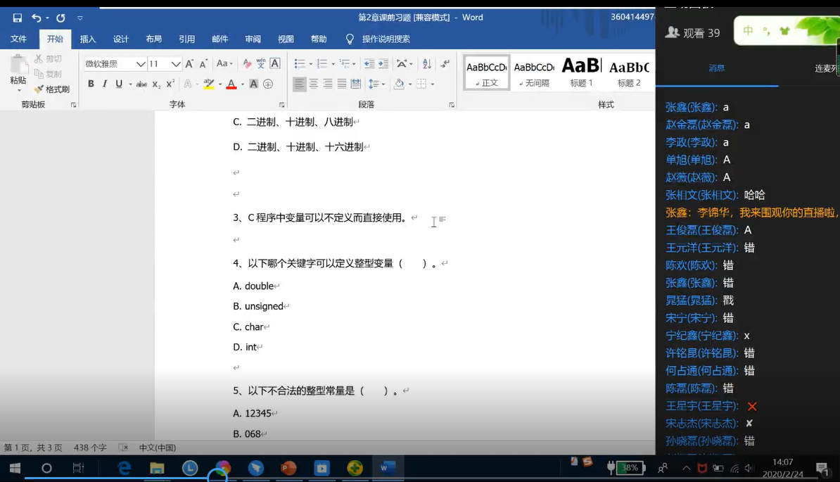 最后,学完本节的知识点,我会带领大家一起处理课中的题目,利用学习通投屏到电脑屏幕,再使用钉钉直播评论区互动回答的方式,此外,无论什么时候,只要同学在线上问我关于学习方面的问题,我都会及时解答,做到不留疑问。