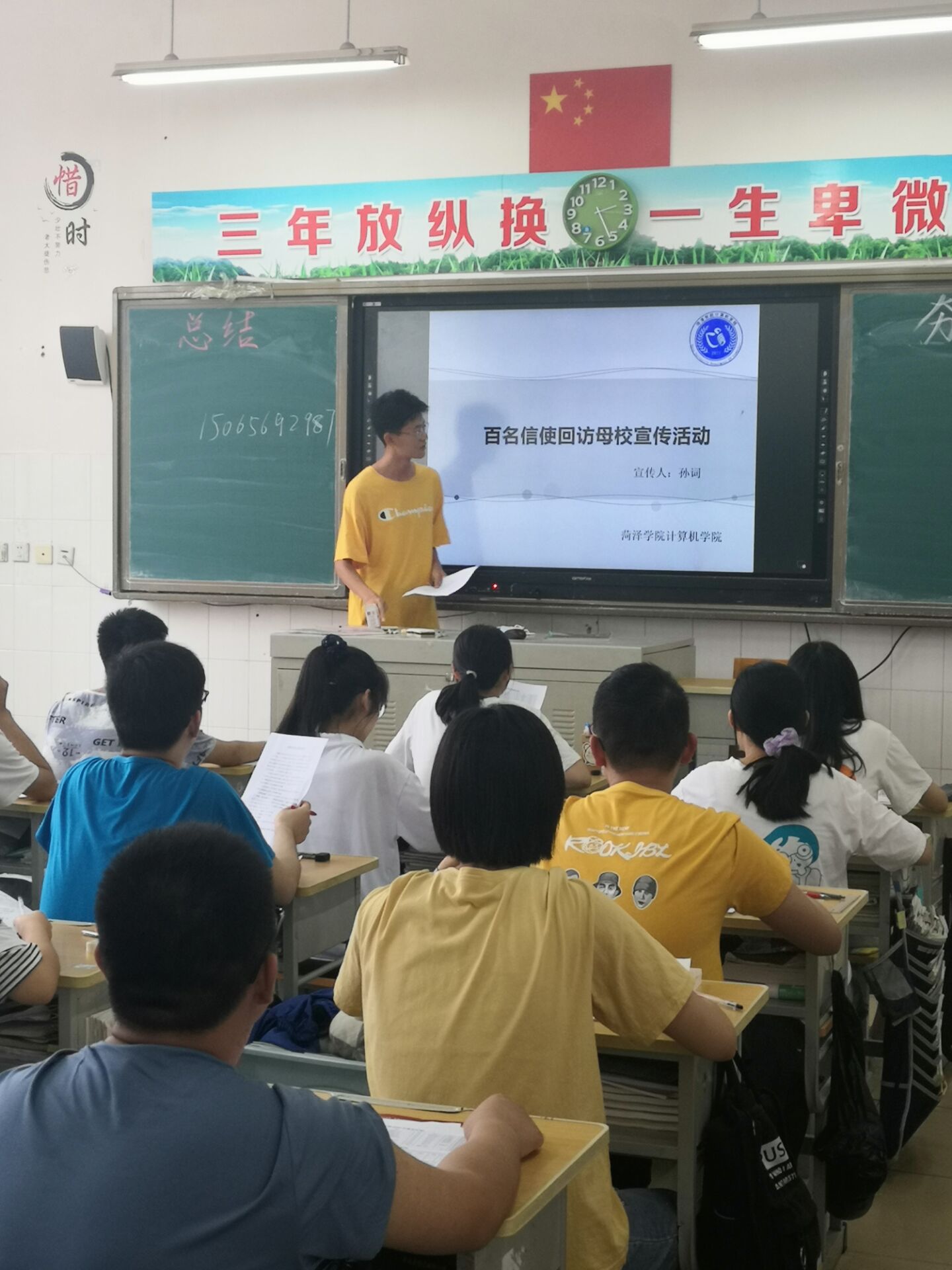 参与回访的学生干部们在校园内对同学们进行询问以得到同学们对大学的看法,随后进入教室,与学生们面对面交流,从各自的高中生活讲起,回忆了母校对自己的教育、老师对自己的关爱,特别强调了学校的理解课堂模式和养成教育对他们的巨大帮助。学生干部利用ppt或宣传单页的方式讲述了了伟德victor1946拥有的专业、历史、师资力量、设施的情况以及学习和生活情况,让在座学生们羡慕不已,使同学对伟德victor1946的各方面有了更深刻的认知和了解,起到了很好的激励作用。除此之外,伟德victor1946的同学在回访母校宣讲时,参与回访的学生干部们还对学生们感兴趣的bevictor伟德国际1946的环境,背景和往年的录取分数线,招生标准、专业方向等重要问题一一作出解答,确保学弟学妹们可以详细真实的了解到bevictor伟德国际1946以及伟德victor1946。