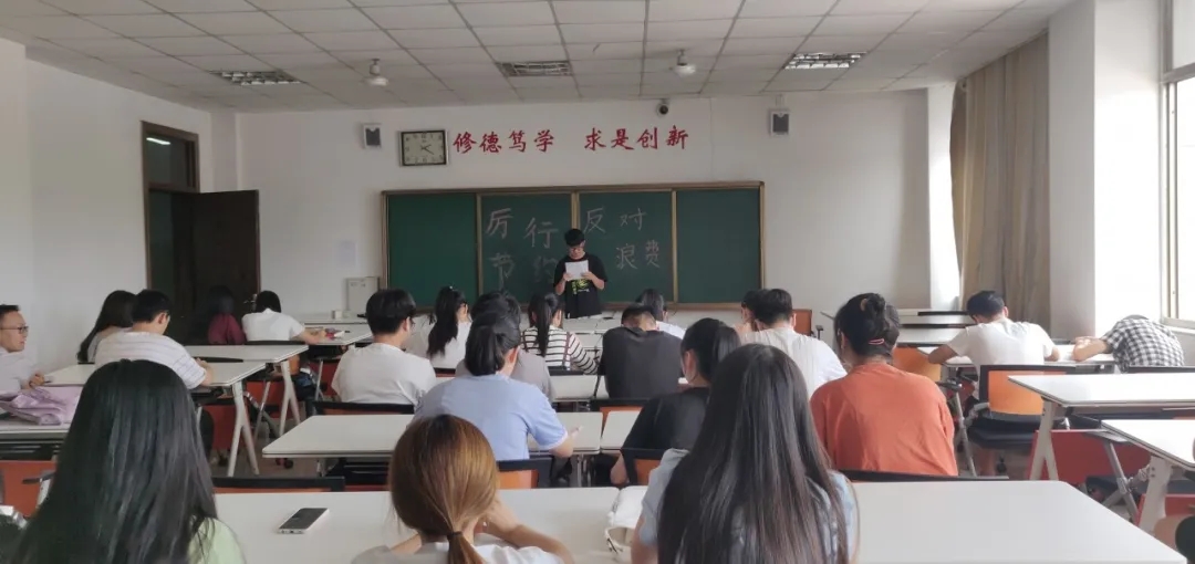 各班主讲人用社会上的真实事例为团员们讲解节约粮食的重要性,重点强调浪费粮食所带来的危害。活动过程中,部分班级组织聆听了《习近平谈治国理政》第一卷16.1,厉行勤俭节约,反对铺张浪费,促使团员们学习习近平总书记关于粮食安全、制止餐饮浪费行为的重要指示精神。活动最后,各班主讲人发出“厉行勤俭节约,践行光盘行动”的倡议,引导团员学子争做光盘行动的践行者。