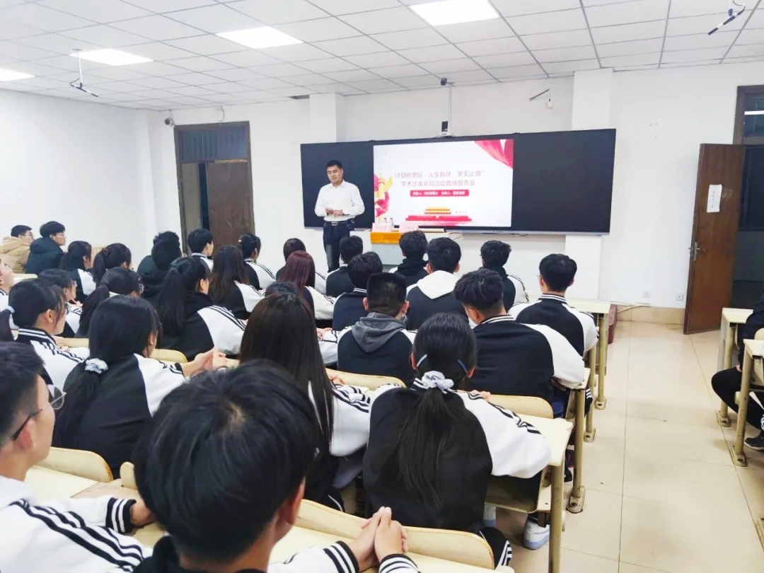 为激发学生学习兴趣,增强学习信心,11月4日晚,伟德victor1946“人生有尽,学无止境”--学术沙龙系列报告在9号教学楼314室开讲。副教授刘文峰老师做了“不怕你起点低,就怕你不努力”首场报告,辅导员郭泉老师主持报告会, 2020级计算机应用技术、网络工程(.net)和计算机科学与技术(虚拟现实方向)专业的全体学生参加报告会。