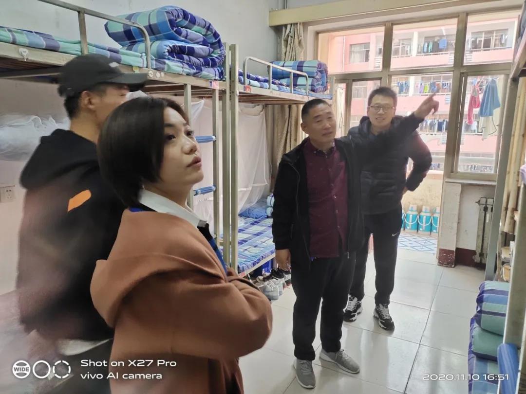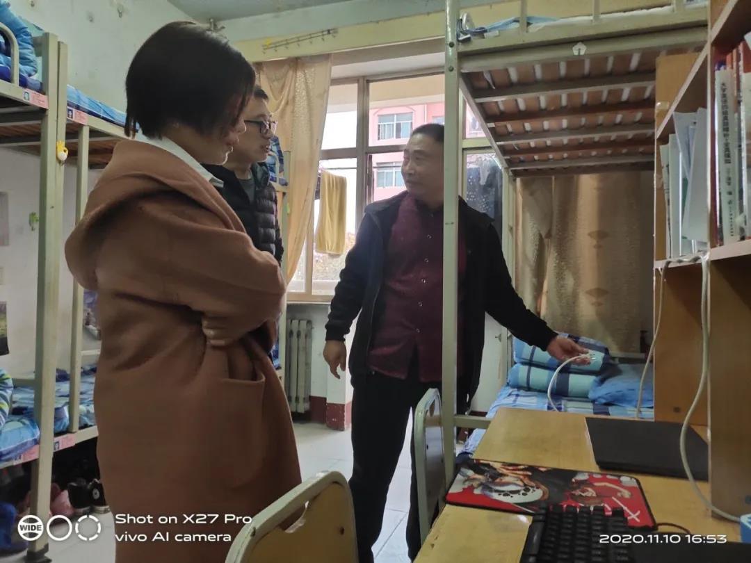 下午4时,走访正式开始。首先,教师来到10号学生公寓,对各个宿舍进行了走访慰问,询问学生有关住宿方面的问题,并嘱咐学生要刻苦学习,认真打理好宿舍卫生。同时,提醒学生要时刻注意安全隐患,出现问题及时上报,防患于未然。接着,辅导员郭泉对吕兆坡和张艺讲解了宿舍管理模式与经验,并以标准宿舍为例,进一步提出了宿舍卫生的标准和要求。他指出:学生生活环境是学生搞好学习的重要前提,好的生活环境能促进学生全面发展,是培养学生的重要基础。随后,辅导员吕兆坡和张艺在检查中对优秀宿舍进行了表扬与鼓励,同时给予量化加分。最后,学生对来访教师的殷切关心表示感谢,今后更加严格要求自己,努力和教师携手构建一个和谐、卫生、安全的宿舍环境。