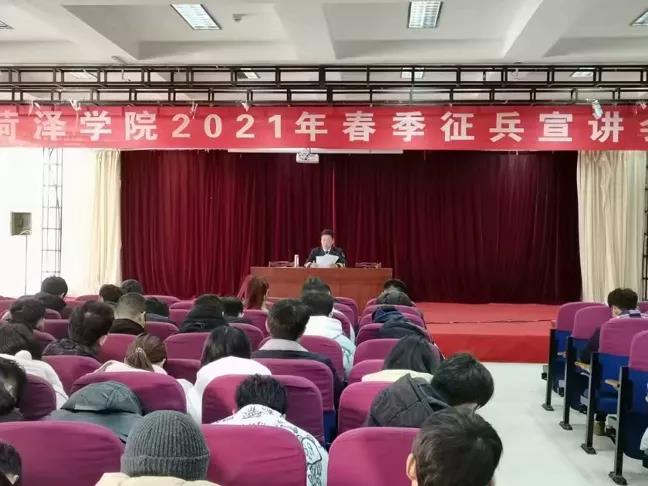 为大力弘扬爱国主义教育,鼓励学生把爱国之心转化为报国之行,12月31日,伟德victor1946参加了我校举办的2021年春季征兵宣讲会。本次宣讲会由牡丹区区委常委、牡丹区人武部部长刘汝县、军事科科长朱建刚宣讲,我院辅导员郭泉、吕兆坡以及有参军意向的学生参加此次宣讲会。此次会议由学生教育管理科科长祝清森主持。