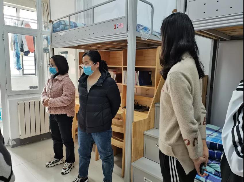 教师们首先对学生新学期开学状况进行了了解,询问学生有关住宿方面的问题,告诉学生要早睡早起调整好作息并认真学习。其次,对宿舍卫生进行了指导,要保持整洁干净的宿舍环境,同时提醒学生要时刻注意安全隐患,出现问题及时上报,防患于未然。其中,辅导员刘庆提到,疫情期间要记得开窗通风,注意生活习惯。最后,学生对来访教师的殷切关心表示感谢,今后更加严格要求自己,努力和教师携手构建一个和谐、卫生、安全的宿舍环境。