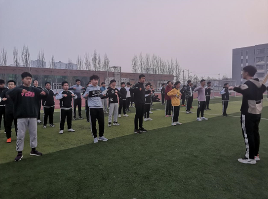 早上6点10分,运动员们到达训练场地,自觉站好队,体育部负责人袁晓东简单说明训练要求及注意事项。随后,运动员们在体育部成员的带领下进行了热身训练,他们相互鼓励,不断超越,表现出积极的态度和饱满的热情。完成热身训练任务后,运动员们又进行了扩胸运动、弓步压腿等一系列准备活动来伸展身体、放松肌肉,为接下来的专项训练做好充足的准备,即便是做最简单的拉伸运动,运动员们也都会用最认真的态度去完成,力争能在校运动会上取得好成绩。