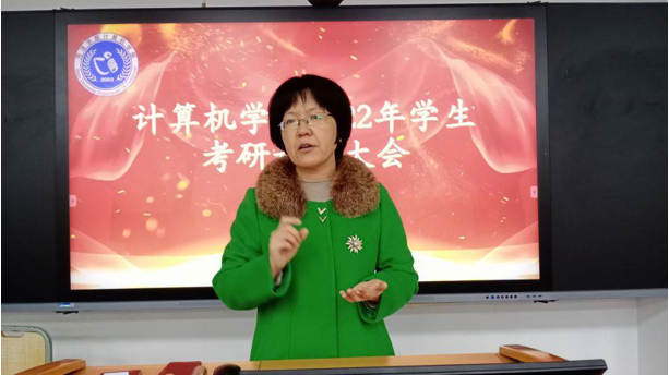 晚上7点,大会正式开始。首先,康鸿雁对考研的一系列问题做出具体分析,为学生的考研工作提供了有效的指导意见,并强调通过考研,学生可以获取更大更好的发展空间,更好地规划职业,希望学生可以坚定努力拼搏的信念,在考研之路上守得云开见月明。