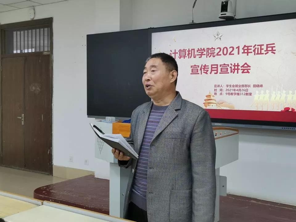 为积极响应国家征兵入伍的政策,把指导学生应征入伍工作落到实处,提高部队整体文化素质水平,4月26日,伟德victor1946在9号教学楼312室开展2021年征兵宣传月宣讲会。我院辅导员郭泉、就业指导部部长田晓峰以及有意向参军的学生参加此次活动。
