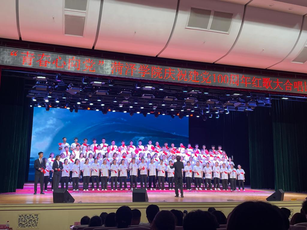 为弘扬爱国精神,重温红色经典,庆祝中国共产党百年华诞,5月27日下午,由bevictor伟德国际1946宣传部、团委主办,音乐与舞蹈学院承办的“青春心向党”红歌合唱比赛在艺术实训演播大厅举行,我院党委副书记陆纯子、学工办副主任许荣花及辅导员张艺带领84名学生组成的合唱队代表我院参赛,董琪担任指挥。