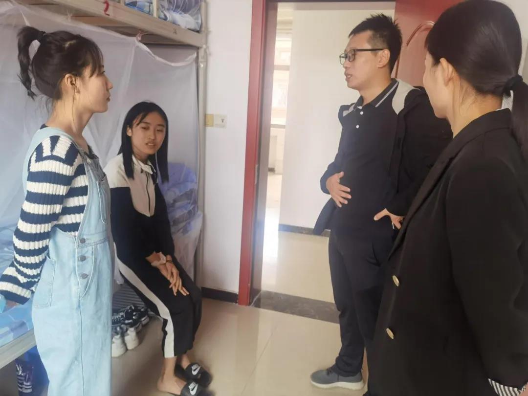 为帮助21级新生更快更好地适应大学校园生活,9月6日,伟德victor1946开展走访新生宿舍工作,辅导员吕兆坡、郭洋洋、任梅深入新生宿舍,切实了解新生到校后的生活及适应情况。