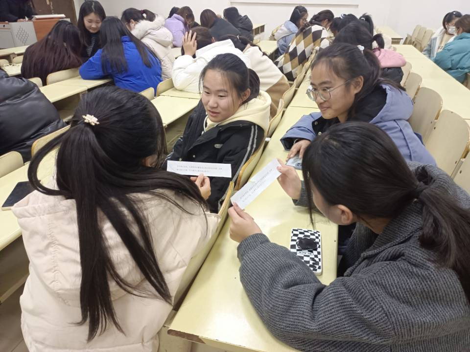 座谈会上,张子茹针对女大学生的普遍特点和女大学生常见心理问题做出讲解。随后,相关负责人将在座学生代表分成六组,并向各组发放关于学业危机、独立危机、财政危机、面子危机、爱情危机、骗局危机等方面的心理问题卡片。各小组成员需讨论面对卡片所示问题时的解决途径,并分享自己在日常学习生活中遇到的心理问题及应对措施。最后,学生共同观看抗抑郁温情短视频,学习如何培养正确的主观意识,更好地控制自我情绪。
