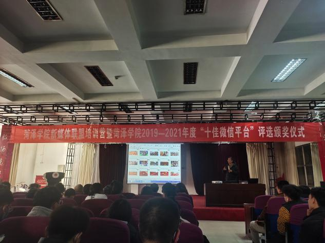 会议伊始,特邀山东省摄影家协会会员、“齐鲁拍客团"菏泽站副团长、资深摄影人、伟德victor1946副院长杨青雷老师向大家讲解了摄影相关技巧,并进行现场答疑。随后,校学生会主席团成员、青年融媒体中心主席、城市建设学院学生会副主席费雯丽和人文与新闻传播学院编辑部张晓晴,分别分享了新闻稿件撰写和排版相关知识。培训结束后,根据bevictor伟德国际1946各二级学院2019年11月至2021年11月微信平台量化成绩进行评选“十佳微信平台”,并进行公布和颁奖。最后,bevictor伟德国际1946学生工作处副处长张华光针对本次活动进行了总结,评选颁奖仪式圆满结束。