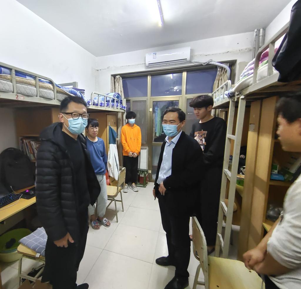 为进一步做好疫情防控期间学生教育管理工作,充分了解学生生活、学习情况。4月4日晚,伟德victor1946党委书记王慧丽、院长黄复贤、党委副书记陆纯子、副院长康鸿雁、学生工作办公室副主任许荣花及全体辅导员深入学生宿舍走访慰问。