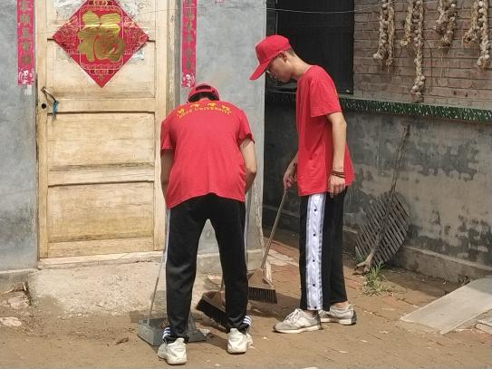来到吴店镇村民家,我院社会实践服务团队志愿者就与老人们拉起了家常,询问其生活动状态,送去亲切的问候,并为老人们送上大米、食用油、牛奶等生活必需品。老人们对同学们啧啧称赞,说“在政府的帮助下,我们生活有保障,非常幸福……”。句句发自内心的感慨,真切赞扬了党的关怀,并对志愿者的到来和帮助表示真心的感谢。紧接着,志愿者拿出卫生工具,在村子里打扫卫生,清理垃圾。最终,在团队成员的辛勤打扫下,村子变得更加干净整洁,团队任务也圆满完成。通过这次活动,同学们打扫了农村的卫生,也得到了心灵的升华。