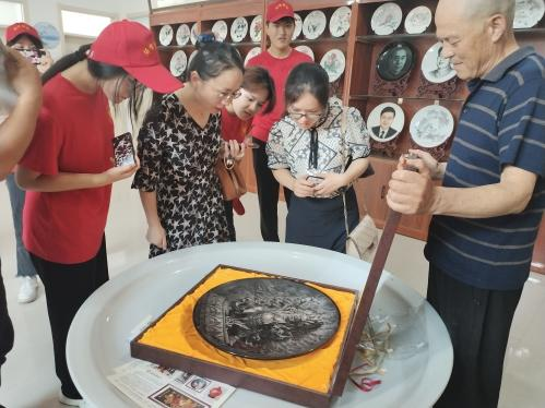 上午9点30分,社会实践团队抵达吴店镇文化广场,受到了村党支部吴先军的热情接待,在吴书记的带领下,实践团队参观了鹁鸽堂民族文化馆。他向大家介绍了鹁鸽堂行政村的区位及人口情况,讲述了鹁鸽堂的由来。听了吴书记的讲解,学生进一步了解了中国的传统节日文化及刻瓷作品、农耕、木工作品及作息生活用品。随后,实践团队来到刻瓷大师马宪荣的工作室,吴店镇政府干部邓桂芹为大家讲述了马宪荣的刻瓷工艺,介绍了刻瓷工艺所需要的坚韧与沉稳的品质。邓桂芹说,鹁鸽行政村的发展得益于中国共产党的指导,广大群众的艰苦奋斗,以及国家和社会的支持与鼓励。最后,我院老师与社会实践团队对当地贫困村民进行了亲切的问候,并得到了村民的赞誉。