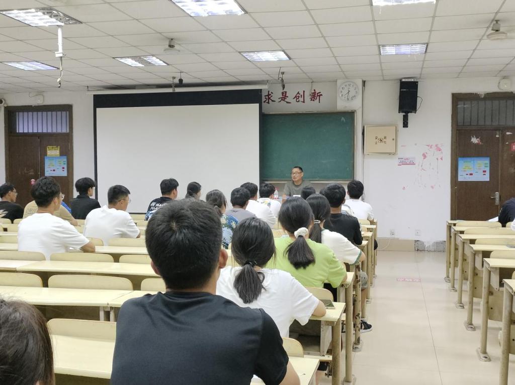 本次讲座分为安全教育、疫情防控教育、意识形态、大学生涯规划教育四大部分。会议伊始,郭泉老师从人身安全、交通安全、消防安全以及如何预防电信诈骗等方面出发,引用典型案例向学生敲响警钟。通过盗窃、诈骗、校园贷、食物中毒等事例的讲解,提高学生的自我保护意识,让学生直观地体会到保护自身生命安全的重要性;他还提到,新生要加强自我防护,做好个人预防和自我健康检测,自备口罩、温度计、手套等防护用品,每天进行自我体温检测并上报。同时郭泉老师还提到,新生要建立正确的世界观、人生观、价值观。最后叮嘱新生“勿忘初心,砥砺前行”正确规划大学生活,制定学习目标,提高学习自觉性和有效性。