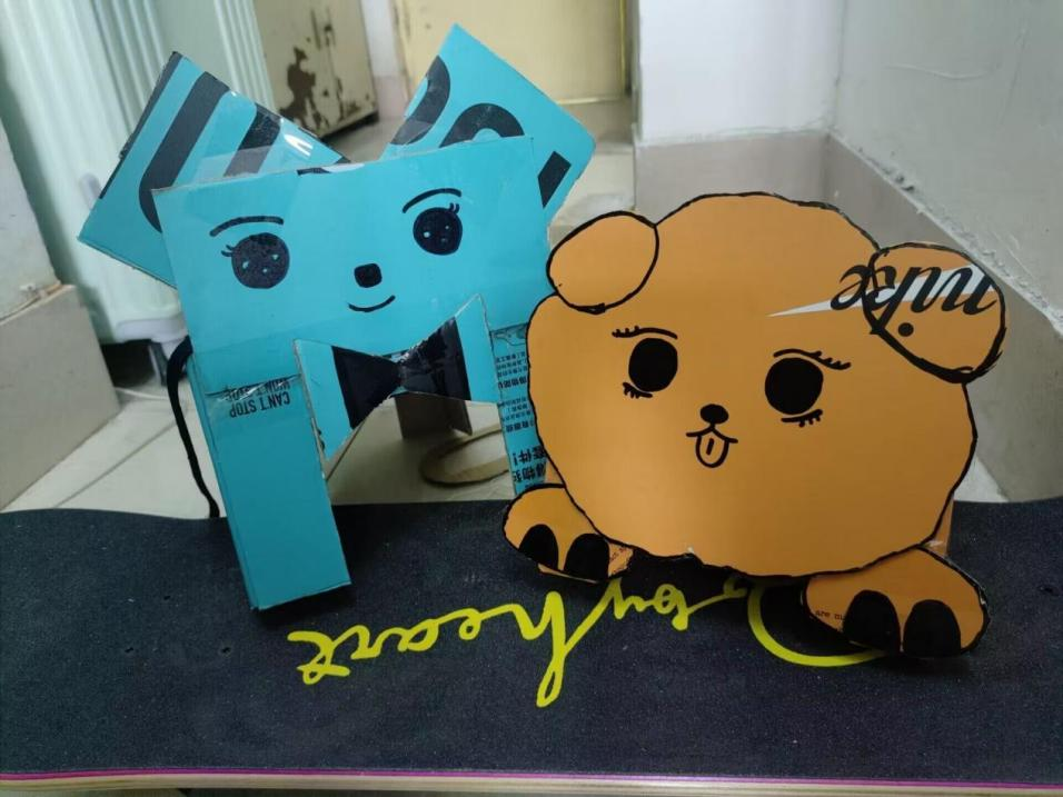 本次活动主题为“创‘疫’舍宠”,参赛作品以个人或宿舍为单位进行制作,参赛成果以照片形式展示。学生利用旧纸箱、易拉罐等材料进行创作。活动期间,学生们充分发挥想象力,通过裁剪、拼接、组合等方式将废弃纸箱做成宠物,并用涂鸦、粘贴、灯光对其进行装饰。在学生们的积极参与下,本次活动征集到的宠物们造型丰富、栩栩如生,兼具美观性与趣味性。
