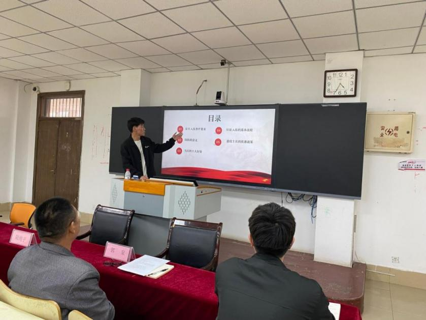 伊始,郭泉老师进行2023年度征兵启动宣讲,宣布伟德victor19462023年秋季征兵工作正式启动,并说明了本次征兵会议的意义与目的。随后老师与同学们共同观看了征兵宣传及征兵入伍新政策视频。视频观看结束后,征兵工作负责学生徐子轩通过PPT的形式,讲解了征兵最新优惠政策十条。最后,赵文庆同学领学了《应征程序及体检标准》,帮助大家进一步深入了解了应征入伍的相关政策。