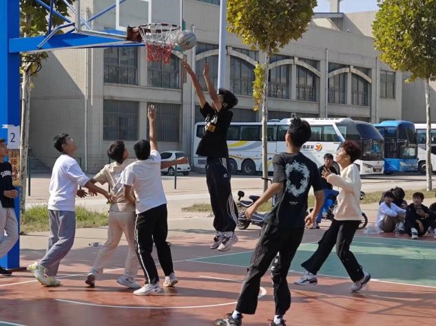上午9时比赛正式开始。随着裁判员的哨响,一场激烈的篮球比赛在学生们矫健的身姿中拉开了帷幕。一开始,各阵营之间默契配合,从容不迫,比分上演追逐大战,进攻者迅速运球全力灌篮,多角度寻找机会,防守者奋力抵挡严防死守,多次阻止对方进球,势均力敌的比赛过程带动现场观赛人员紧张起来,在大家的加油助威下和学生们的不懈努力下,23级物联网工程,23级计算机科学与技术(慧与校企合作)和23级计算机科学与技术(.net)赢得比赛。