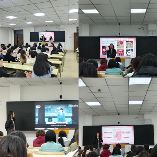 讲座伊始,解文佳老师通过视频、PPT等形式,介绍张桂梅、屠呦呦、华春莹等杰出女性的事迹,展现她们在不同领域取得的卓越成就,不仅彰显了女性的力量,也激发了女大学生们的奋斗热情。之后,邀请现场女大学生分享自己对这些优秀女性的看法和感悟,讨论女性在社会中的价值和作用。