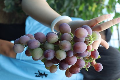 在负责老师訾鹏飞的带领下,全体志愿者深入葡萄种植基地,走进田间地头,与种植户面对面交流,深入了解葡萄的种植技术、管理经验以及市场销售情况。种植户们热情分享,志愿者们认真倾听,现场气氛热烈而融洽。此外,志愿者们还利用手中的相机,记录下葡萄园的美景与种植户的辛勤劳动,为后续的小程序制作积累了宝贵的素材。