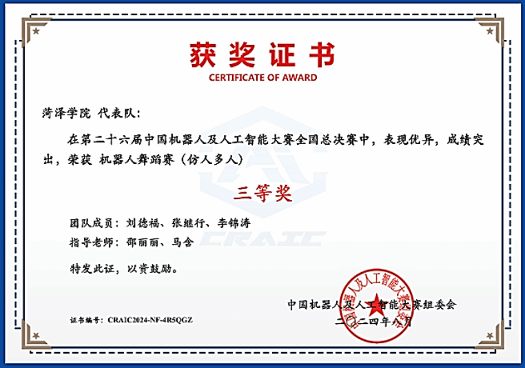 伟德victor1946变形金刚工作室在指导老师邵丽丽、马含的带领下,参加了机器人舞蹈赛(仿人单人)、机器人舞蹈赛(仿人多人)两个项目的比赛。团队凭借过硬的技术和创意,通过精准的动作控制、流畅的舞蹈编排以及高度智能化的交互,成功摘得了机器人舞蹈赛(仿人单人)国家一等奖第一名的桂冠,并在机器人舞蹈赛(仿人多人)项目中荣获国家三等奖,实现了历史性的突破。