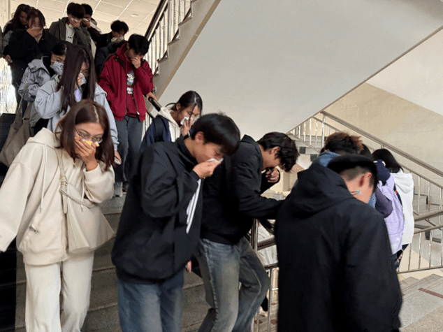 演练正式开始,辅导员和安全员的引导下,学生们保持冷静,用湿毛巾捂住口鼻,低头弯腰,避免吸入有毒烟雾。在每个楼层和出口处,安全员们认真履行职责,引导学生们正确疏散,避免发生踩踏等意外事故。学生按照指定的疏散路线,迅速而有序地撤离到安全区域。