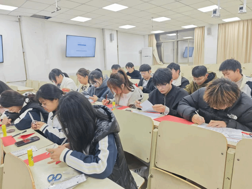 晚上7点整,剪纸活动正式开始,心灵手巧的同学们在教室里领取到纸张和工具后便在自己的位置上开始了创作。青春的思想游走,在红色纸张上绘出独属于自己的天马行空。有些同学有一定基础,能裁出一些栩栩如生的画面;但更多的同学还是第一次接触这项活动,尽管他们或许并没有如此心灵手巧,但这份传承文化的思想却更值得我们宣扬。活动持续了将近一个小时,结束时的同学们看着自己努力创造出的画面,脸上都浮现出满意的笑容。